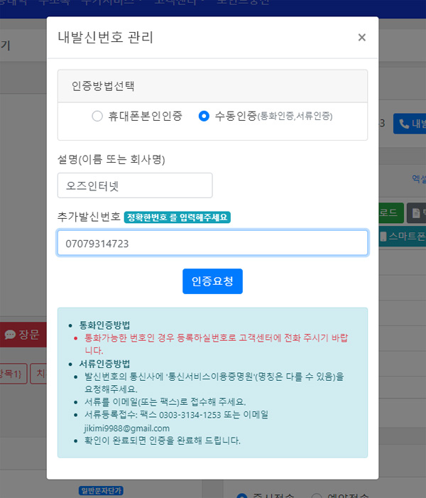 3) 인증방법선택 중 "수동인증" 을 선택해주세요.